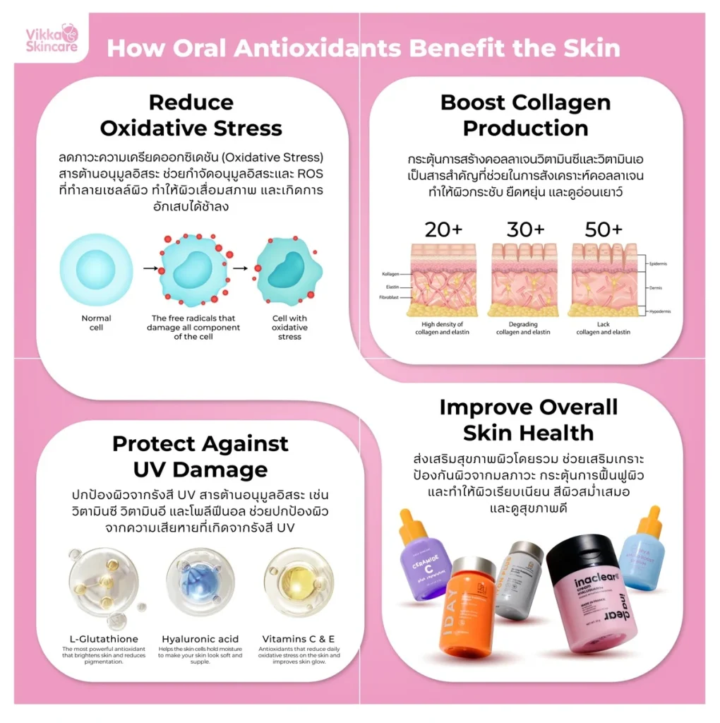 ประโยชน์ของ สารต้านอนุมูลอิสระ (Antioxidants) ชนิดรับประทานต่อสุขภาพผิว