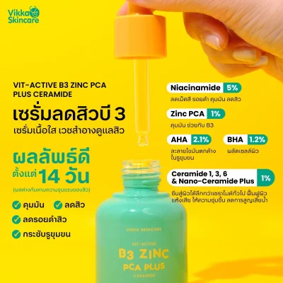 VIKKA SKINCARE Vit-Active B3 Zinc PCA Plus Ceramide (30 ml) เซรั่มบี 3 ลดรอยสิว กระชับรูขุมขน คุมมัน